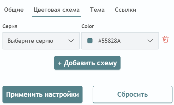 In the Color tab you can specify the color scheme for the pie chart. After clicking the Add new rule button, you can specify the desired Series and its Color.